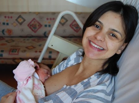 Bom, como entrei em trabalho de parto, meus hormônios estavam prontinhos para mandar descer o colostro. Dito e feito. Cheguei no quarto e ele já estava lá, saindo lindão!!! Então, assim que a Marina chegou, a enfermeira já a colocou em meu peito e ela mamou direitinho. Por estes e outros motivos, mesmo que a mulher tenha medo do parto normal, acho muito importante esperar a hora do bebê. Quando eles avisam que querem sair, tudo flui melhor, o leite, a pegada do bebê, afinal de contas, a fruta precisa ser retirada do pé madurinha, senão fica dias lá na fruteira não é verdade?