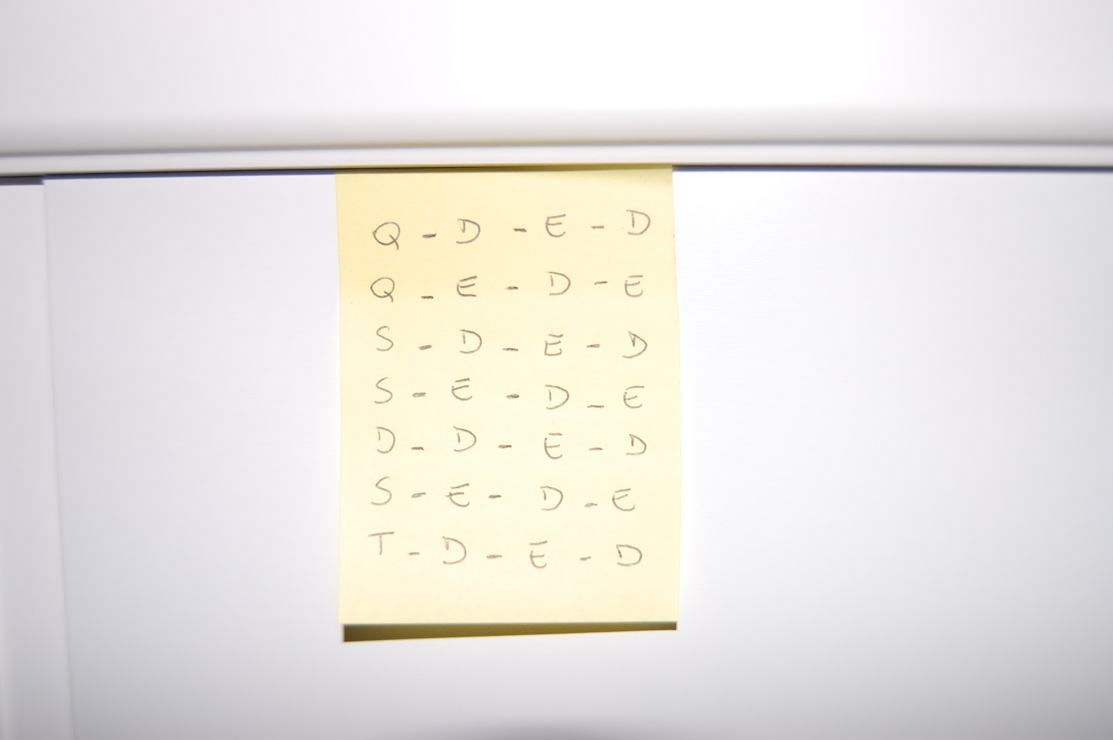 Para não esquecer que peito eu tenho que dar eu colei um post it no berço dela, já que um eu dou para ela e, como o outro sobra, eu tiro para doar. Não tenho cérebro nem para isso mais...hehe