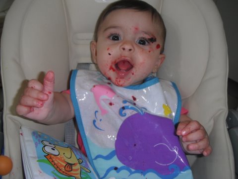 Não está sendo fácil, mas superaremos essa fase, pois quero que a Marina aprenda a saborear tudo e saiba ter opinião à respeito dos alimentos. Mas que ela gosta de um mamá, ah, como ela gosta...(e eu também heheeh)